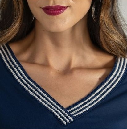 O decote em V valoriza o colo com sutileza e alonga a silhueta, enquanto a modelagem clássica permite combinações infinitas — com calça, saia ou até por baixo de um blazer.