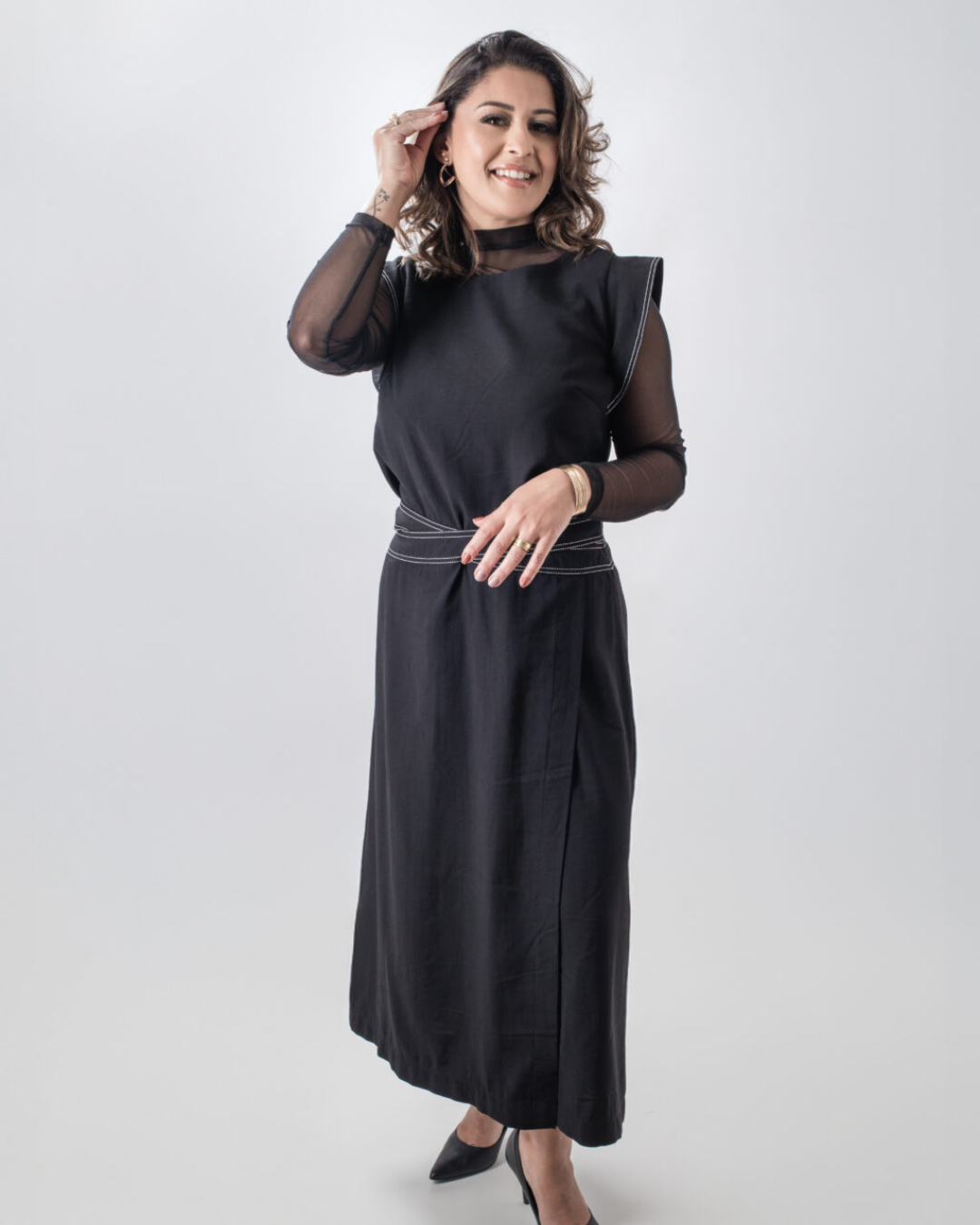 Confeccionado em tecido de alta qualidade, oferece toque confortável e caimento impecável, permitindo composições que vão do trabalho a eventos sociais. Moderno e funcional, combina com acessórios e calçados variados, tornando-se uma peça-chave no guarda-roupa da mulher que valoriza estilo inteligente e atemporal.